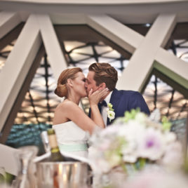 The futuristic building of the hotel is fully-glazed, embellished with white, it is truly impressive. A great place for a large scale wedding party, which is what the couple had in store for their guests.