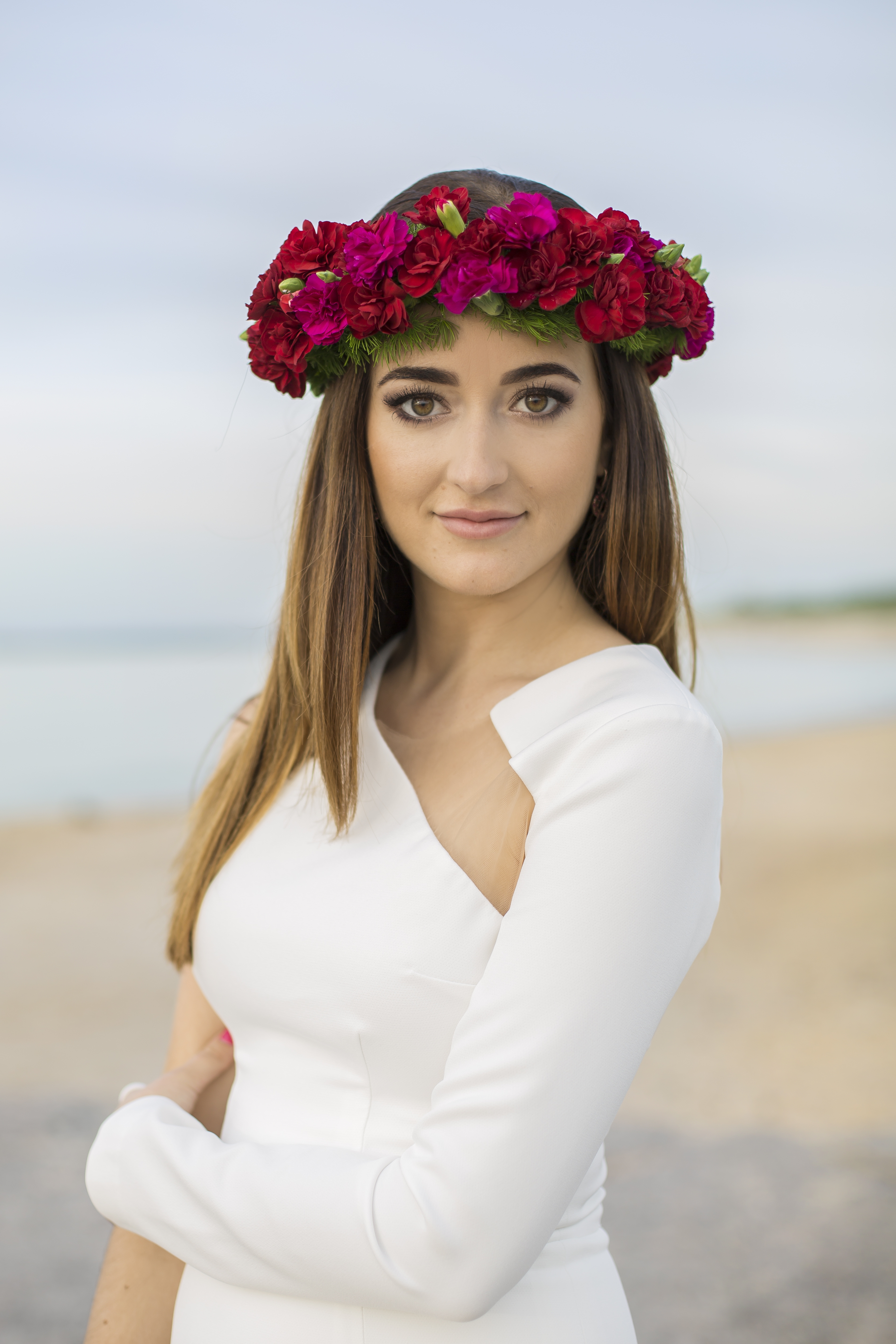 Emilia postawiła na piękną, klasyczna, białą suknie z delikatnymi dodatkami, widać było,